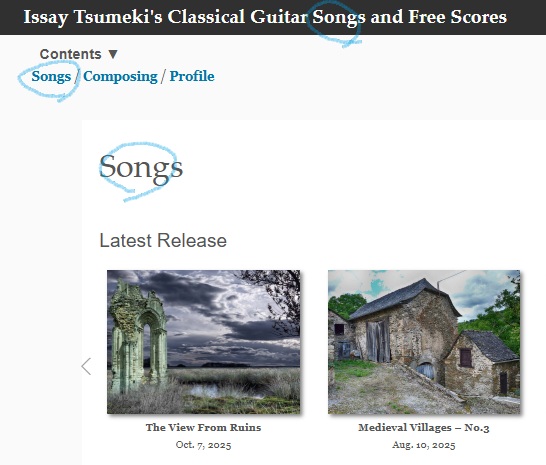 私のサイトでは「曲」を表す英語として ‘Songs’ を使っています。歌詞がない曲ですから ‘Pieces’ や ‘Pieces of music’ が正しい言葉遣いだと思いますが、私が ‘Songs’ を使っているのには理由があります。